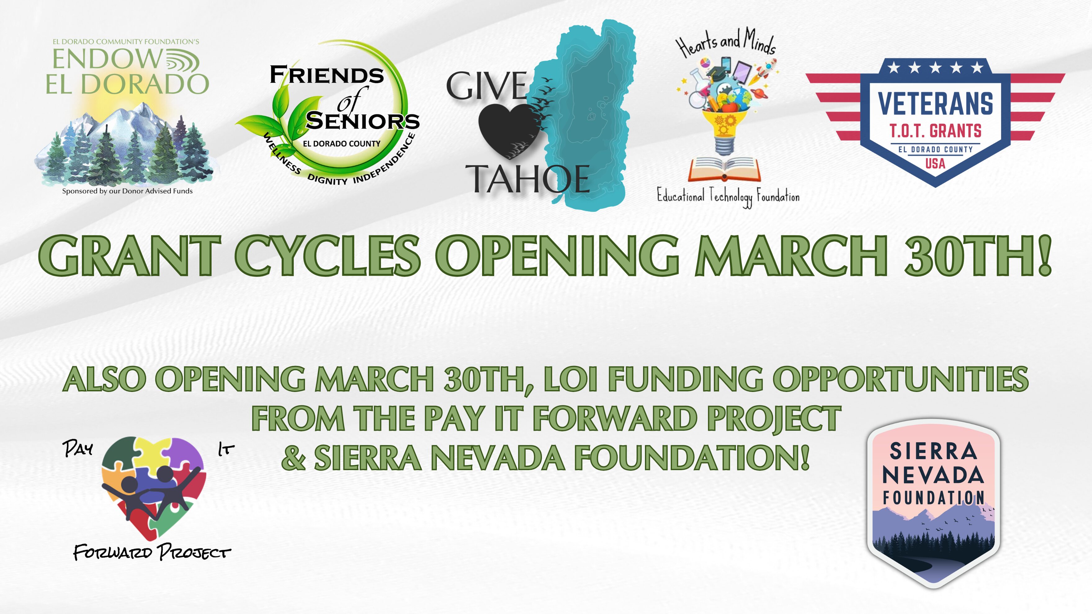 Throughout the year, the El Dorado Community Foundation offers competitive grants and scholarships through Request for Proposal (RFP) applications. For more Grant & Scholarship information, call us at (530) 622-5621 or email info@eldoradocf.org to contact our Director of Grants and Programs