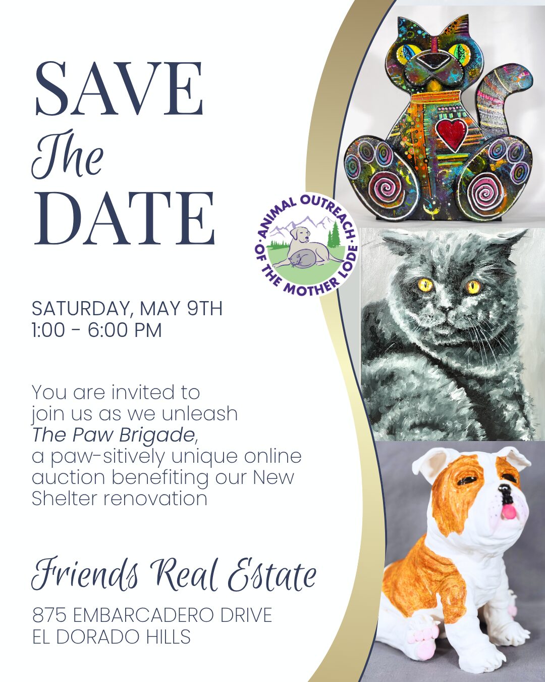 Join Animal Outreach for a paws-itively unforgettable afternoon of celebration as they unleash The Paw Brigade, a fun-filled day celebrating the future home & expansion plans for Animal Outreach. This event will showcase an array (70+ pieces) of pet-themed art by various local artists up for auction to raise funds for their New Shelter project.